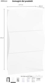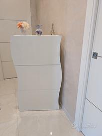 Vendo la scarpiera Moderno molto elegante, modello effetto a onde fatto in legno MFD truciolato, colore bianco laccato lucido, sono a tre ante le adatto sneakers, mocassini, tacchi, stivaletti.