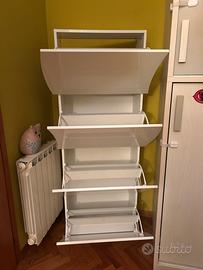 Scarpiera Ingresso in Legno Lucido ONDE 4 Ante Bianco Salvaspazio 71x26.5x161cm