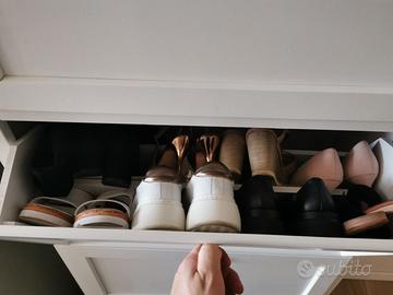 Vendo come da foto scarpiera in legno a 5 ripiani, ogni vano propone una capienza doppia con un comodo separatore per le scarpe...