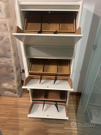 Scarpiera originale Nuova Canguro in Legno Due cassetti piu tre contenitori per scarpe con divisori interni scorrevoli