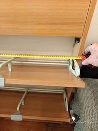 colore legno chiaro e maniglie metallo grigio. vendo per inutilizzo, praticamente è stato un mobile di arredo. dimensioni altezza 145 larghezza 70 profondità 15