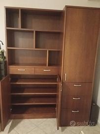 In legno massello, scarpiera, libreria, armadio e cassettiera... lunghezza 161 cm altezza 214 cm.