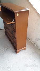 Scarpiera Made in Italy in legno massello con 2 ante e un portagioie, presenta segni di usura ma è robusta e in buone condizioni estetiche e ottime strutturali.