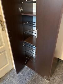 Scarpiera in legno larga 65cm, profonda 35cm e alta 184cm, con due ante e sostegni interni per le scarpe, usata ma in buone condizioni. Ritiro in zona Porta Genova.