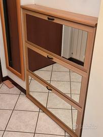 vendo scarpiera slim anche da poter nascondere dietro la porta. misure larghezza 90 x altezza 110 x profondità 18 . ogni antina è completa si specchio. ritirabile in zona san Siro.
