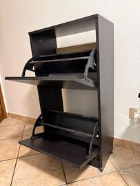 Scarpiera con ante ribaltabili in laminato effetto legno colore marrone