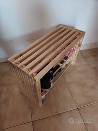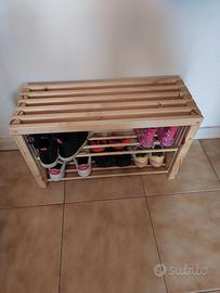Scarpiera Montessori con seduta, in legno di abete. Handmade Dimensioni h34x55*21 cm