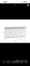 Scarpiera con seduta color bianco, stile nordico. Due aperture. Misure in foto.