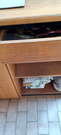 Scarpiera in frassino misure: larghezza cm 106 ..h. 90 ..profondità 36 con 4 ripiani 2 a vista e 2 con anta. Cassetto per riporre vari oggetti. Condizioni discrete il lato destro è un po ' rovinato basta una verniciatura parziale o totale oppure quel lato sistemarlo contro il muro. Consegna a mano