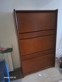 scarpiera in legno, contiene 24 paia di scarpe e ha 2 cassetti . altezza 150 , larghezza 90 , profondita 30 cm. ritiro a roma