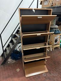 vendo scarpiera in buono stato. come da foto l’ultimo scomparto ha bisogno di essere sistemato (è uscitoo il fermo). Gli altri scomparti son stati già sistemati. per il resto è integra e solida. maniglie nuove.