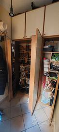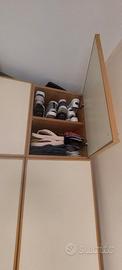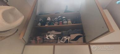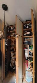 Vendo scarpiera in buono stato come in foto . Misure : larghezza 150cm, altezza 258 cm , profondità 44cm ..colore beige chiaro e ciliegio. Costituita da una parte centrale a due ante, molto capiente ,dove potrai conservare molte scarpe, che si apre verso l'esterno ( e le ante possono contenere a sua volta anche altre scarpe) e da un' anta a dx adibita a sistemazione generale(ferro da stiro, asse, prodotti per la pulizia etc. È costituita anche da una parte alta a due ante apribile verso l'esterno e da un'anta a dx adibita a sistemazione