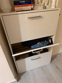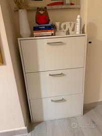 Vendo elegante scarpiera in ottime condizioni, ideale per ingresso o corridoio grazie al design compatto e moderno. •Dimensioni: altezza 100 cm, profondità 15 cm (ultraslim, perfetta per spazi ridotti) •Colore: bianco, facilmente abbinabile a qualsiasi arredamento •Struttura: robusta e stabile •Capienza: 3 ribalte con buona capacità per scarpe (anche uomo/donna) •Apertura: pratica a ribalta, comoda e salvaspazio •Stato: usata ma tenuta molto bene, perfettamente funzionante Ideale per chi vuole tenere l’ingresso ordinato senza occupare troppo spazio. 👉 Ottima soluzione per piccoli ambienti o case moderne.