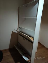 Vendesi solida scarpiera salva spazio prof. cm.15 h. cm. 180 largh cm.90 .Ottimamente rifinita, piccola calamita che tiene chiuse le antine.Usata pochissimo come da foto. No consegna