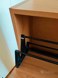 Vendesi scarpiera, colore noce, a 3 scomparti. In ogni spazio si trova un portascarpe a 2 file; molto capiente. Dimensioni: 67*25*118 (altezza). Già montata, usata molto poco. Ritiro a carico dell'acquirente, zona Siena Nord.