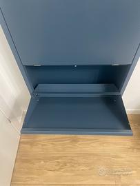 Scarpiera nuova 3 ante in metallo mai usata colore ceruleo (Pantone 18-4221 TCX).