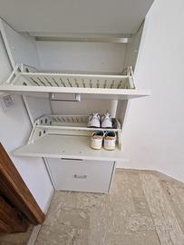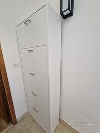 Vendesi scarpiera in legno doppia bianca, ottime condizioni. Misure: h 1,83 mt; larghezza 67,5 cm; profondità 28 cm.