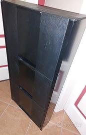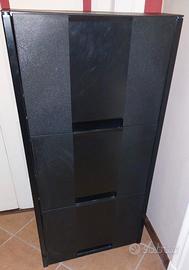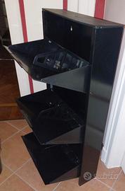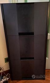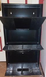 Scarpiera verticale nera con tre scomparti. Le misure: profondità 15 , altezza 102 , larghezza 50.