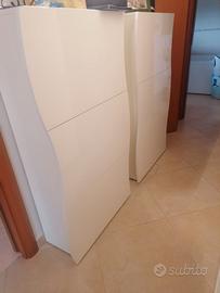 Vendo coppia di scarpiere h 121 l 69 pr 28 in laminato bianco lucido in ottimo stato