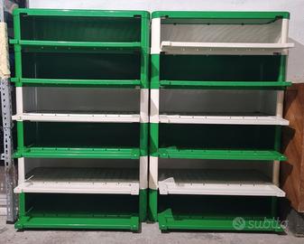 Due Scarpiere Kartell Design Olaf Von Bohr Vintage anni '70 6 moduli verde bianco componibile complete di coperchio.