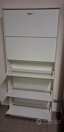 Vendesi 2 scarpiere bianche, una con 5 ripiani, alta 180cm, larga 80cm, profonda 20cm. L'altra a 3 ripiani, alta 100cm, larga 65cm, profonda 25cm. Il prezzo è per le 2 scarpiere. Non spedisco.