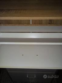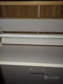 Due belle scarpiere una di color teck e l'altra chiara. La scarpiera scura ha 5 ripiani - largo 83,5 - profondità 30,5 - altezza 124 – mentre l'altra scarpiera in legno chiaro ha tre ripiani. Ogni ripiano ha due file di scarpe. Misure 60 x 24 x 116. Si possono prendere anche separatamente a 70 € l’una.
