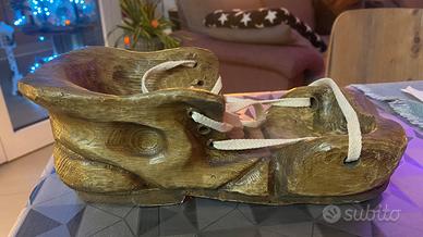 Vendo scarpone di legno artigianale intagliato porta bottiglie , adatto x bottiglie da campari - select - martini o vino/prosecco per regalo.
