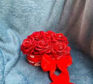 Scatola a forma di cuore con rose rosse glitterate