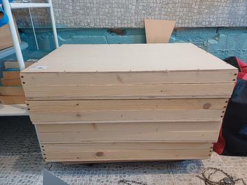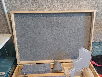 vendo 4 scatole realizzate a mano, misura 60x40x9h cm. per esposizione bigiotteria. inclusi sacchetti ed espositori per bigiotteria. vendibili singolarmente. il prezzo indicato corrisponde alla singola scatola.