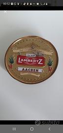 Lambertz stagnata vintage, german cookie barattolo di biscotti europeo barattolo per souvenir. Lo stagno funziona ancora per la musica.