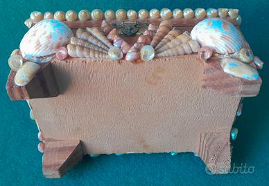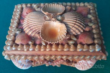 Scatola cofanetto portagioie di conchiglie realizzata in legno interamente