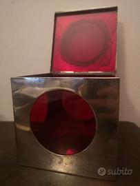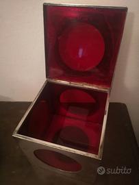 Scatola cubo vintage anni ‘70 in metallo e plexiglass rosso, circa 20 cm per lato Vintage 1970s cube box in metal and red plexiglass cube box, approx. 20 cm each side