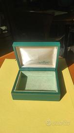 Vendo bellissima scatola vintage per Orologi d'epoca ROLEX. Trattasi di una rara scatola piramidale risalente agli '60/'70. Colore verde Rolex. Dimensioni 13 cm x 10,2 cm e altezza 5,2 cm. Ottime condizioni, presenta due piccole macchie sulla parte superiore ben amalgamate, nella parte interna è perfetta. Sulla parte superiore presenta il classico simbolo Rolex, mentre internamente reca la scritta Creation Geneve ROLEX e il simbolo della casa svizzera. Si apre e si chiude perfettamente. Consegna a mano gratuita e garantita ovunque possibile, spedizione solo con corriere espresso Inpost tracciabile e sicuro al costo di 8 euro.