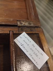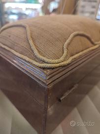 Bauletto/ scatola da cucito o portagioie in noce del XX secolo con tessuto originale. Misura 22x15 cm.