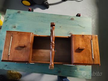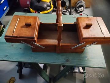 Vendo questa splendida e autentica Scatola da Cucito in Legno a Fisarmonica, un pezzo che unisce il fascino vintage all'assoluta praticità.