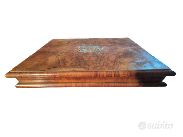 Scatola da gioco vintage in radica d’olivo e noce, contenente
