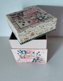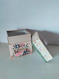 Scatola decorativa con un tema che include elementi come alveari, api, angurie e riferimenti alla "Honey Factory". La scatola cubo può essere usata come contenitore per oggetti ocome elemento decorativo.
