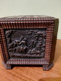 antica scatola con Facciate In Bronzo fine 800. ottimo stato misure : lunghezza 29 larga 14 alta 13