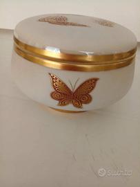 Scatola della Longo in fine porcellana dipinta a mano con preziose incisioni in oro 24/k e smalti. eseguita con il metodo dell'acquaforte. Prodotto alta qualità rifinito accuratamente e interamente da mestri. Tema: Farfalla simbolo della Rinascita.