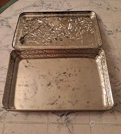 Scatola per biscotti in latta marca Teniers. Come da foto. Dimensioni 33x20x7.