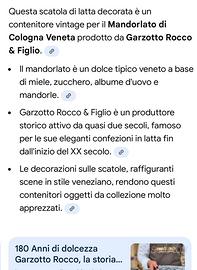 Scatola di latta decorata è un contenitore vintage Le decorazioni sulla scatola , raffigurano scene in stile veneziano che rendono questo contenitore oggetto da collezione molto apprezzato