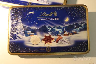 Scatola di latta Vintage Natalizia Lindt FROHES FEST Cioccolatini Tin Box. in questa inserzione vendo singolarmente scatola di latta, del marchio Lindt, sono a tema natalizio e invernale, da collezione, misure circa h 45 x 28 x 18cm.