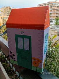 Deliziosa scatola / casa completamente arredata all'interno.Rivestita con carta da parati e ammobiliata. Letto con cuscini e un tenero gattino che fa le ninne. Comodino con telefono d'epoca,tanti quadri,una cesta con dentro una chitarra e uno spettacolare lampadario che scende dal soffitto.Dimenticavo:ci sono anche le ciabattine sotto il letto!!!🩷🩷🩷 Solo spedizione📦📪No sconti🚫