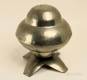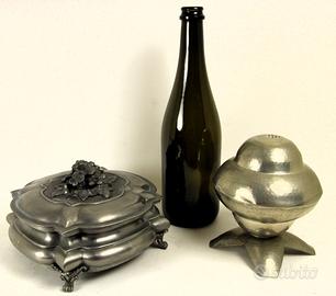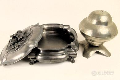 Coppia di eleganti oggetti in peltro lavorati a mano e in fusione, composto da: