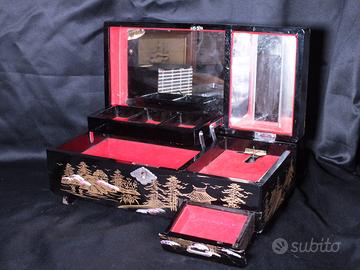 Scatola giapponese originale laccata nera con qualche imperfezione sui bordi e senza ballerina sul carillon. Il carillon suona "my Way" perfettamente, ma non essendoci la ballerina, la musica non si ferma quando si chiude la scatola. Manca anche la chiave.
