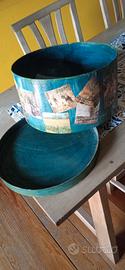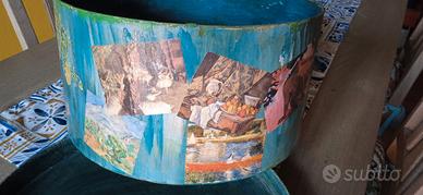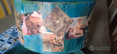 Grande scatola decorata con decoupage e dipinta a mano, raffigura scorci di quadri di famosi pittori (Van Gogh, Renoir, Gauguin). Ha circa 30 anni, qualche segno del tempo, è ancora bella. Prezzo simbolico. Consegna mano a Milano. No spedizione.