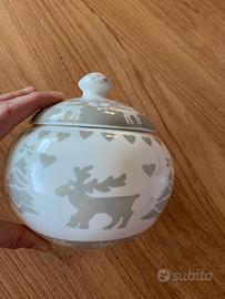 Scatola in ceramica bianca, decorazioni natalizie beige, con coperchio, adatta per conservare caramelle o cioccolatini, con scatola originale
