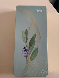 Vendo scatola/portaoggetti in latta marca Just, tenuta bene.