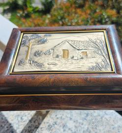 Scatola in legno con coperchio in argento 800, buone condizioni.