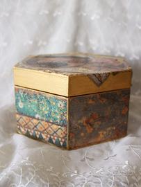 Scatola in legno decorata con tecnica decoupage pittorico e applicazione foglia oro, soggetto Gustav Klimt.
